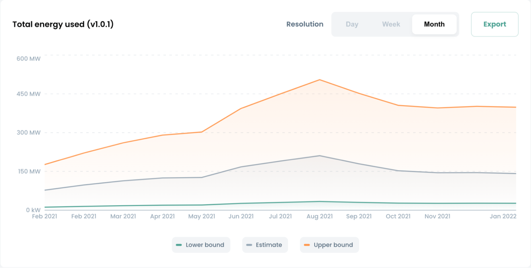 The Filecoin Green open source dashboard promotes energy transparency by mapping the energy consumption of individual SPs to their unique identifier as well as aggregating data from the whole network.