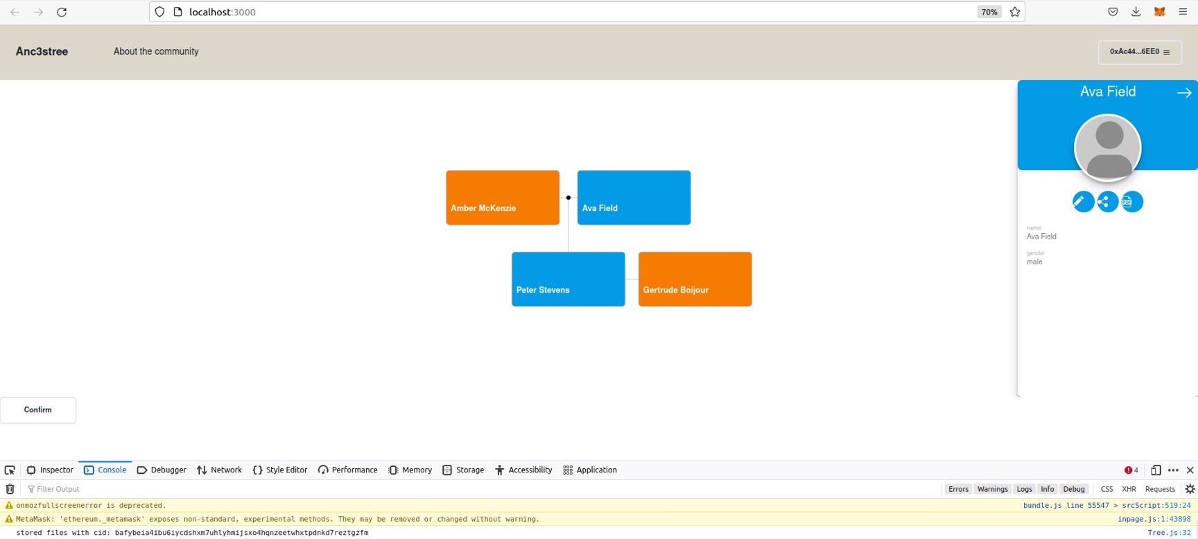 Anc3stree is a Data DAO that provides permanent storage of family trees by utilizing smart contracts and Filecoin storage. Anyone can use Anc3stree to build a family tree and keep a record of family relations. Decentralization and wide blockchain accessibility unlocks perpetual family tree storage for generations.