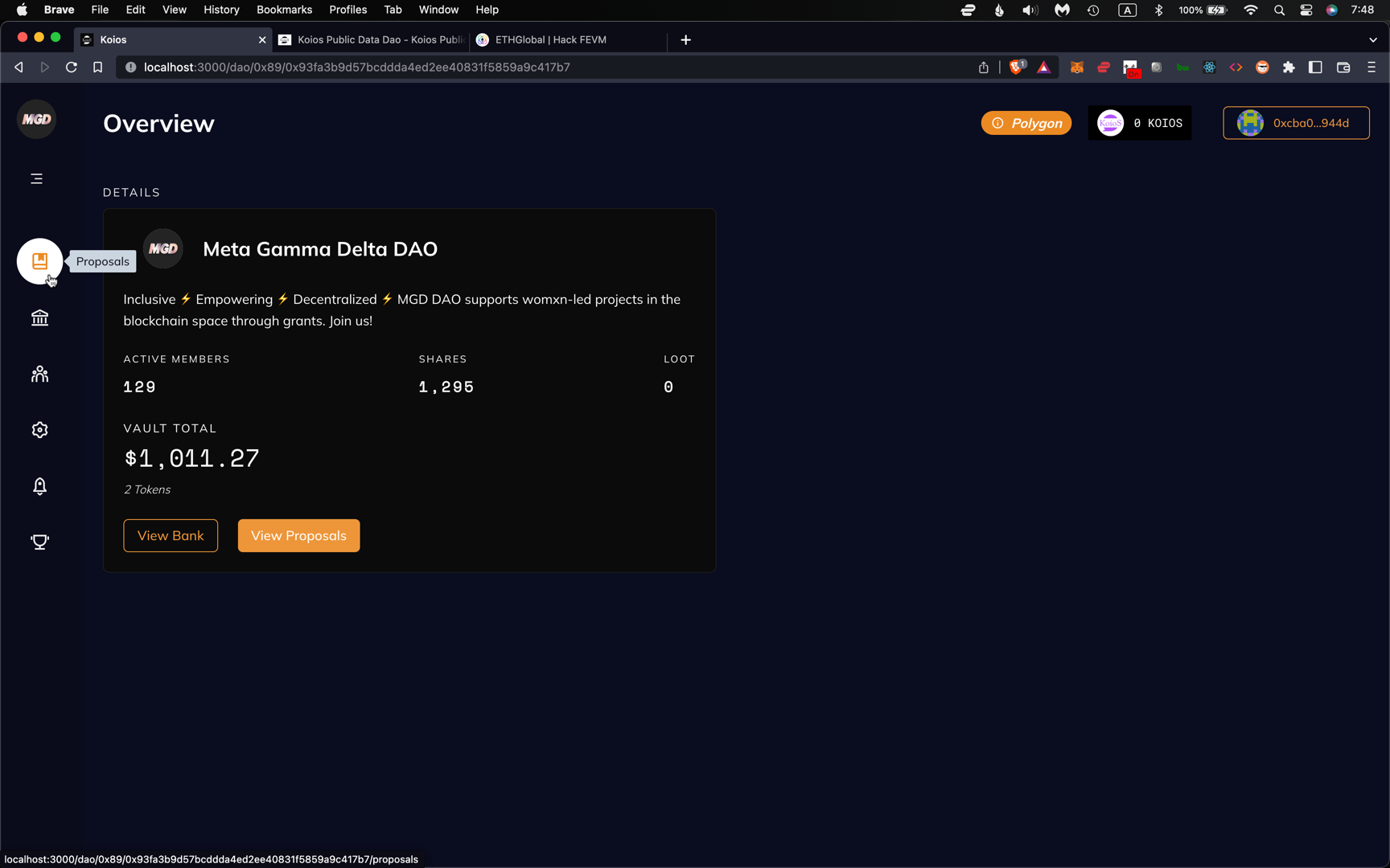 Koios is a no-code Data DAO platform where anyone can launch, manage, and upgrade data DAOs that can enable data publishers, algorithm developers, and consumers to manage and use datasets. Anyone can create a DAO from an NFT or token and manage that DAO by allowing members to participate in things like staking, proposing, investment vaults, NFT galleries, and voting.