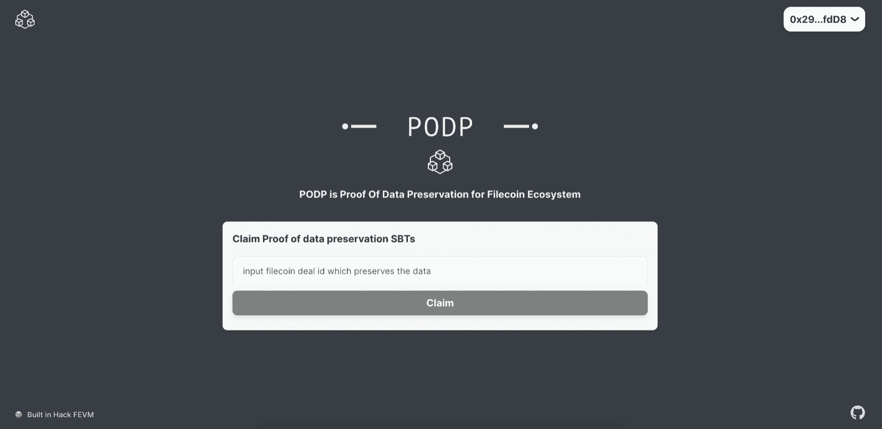 Proof of Data Preservation (PODP) mints dynamic SBTs based on the Filecoin preservation status. The SBT proves that someone is a legitimate data preserver in the community. With PODP, users can claim SBTs for proof of data preservation by checking the deal status in the Filecoin network. While a lot of NFT data management uses IPFS, the content could disappear as time passes. PODP hopes to solve this problem by introducing an incentive to preserve NFT-related data for community members.