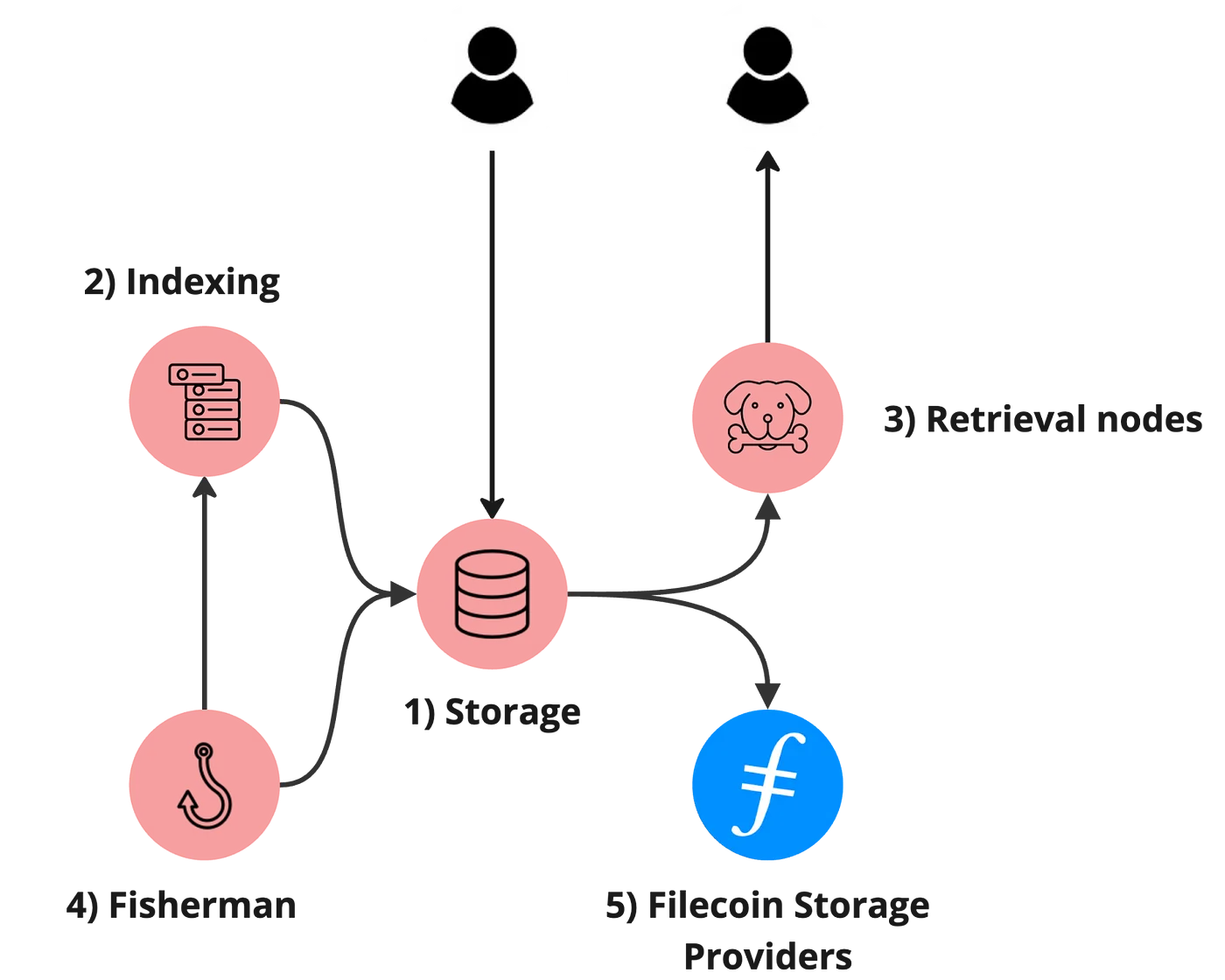 We’re better together. Believe! Saturn has been doing great CDN-ing, literally serving billions of content-addressed requests and efficiently retrieving data from Filecoin. Something was missing though, the other side of the bridge! Saturn served data from Filecoin to users, but had no means of getting user data into Filecoin! Facepalm.