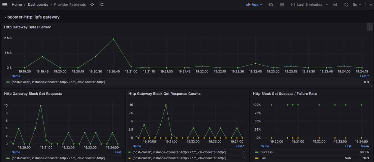 For monitoring booster-http, there are two relevant panels: booster-http and booster-http:ipfs-gateway.