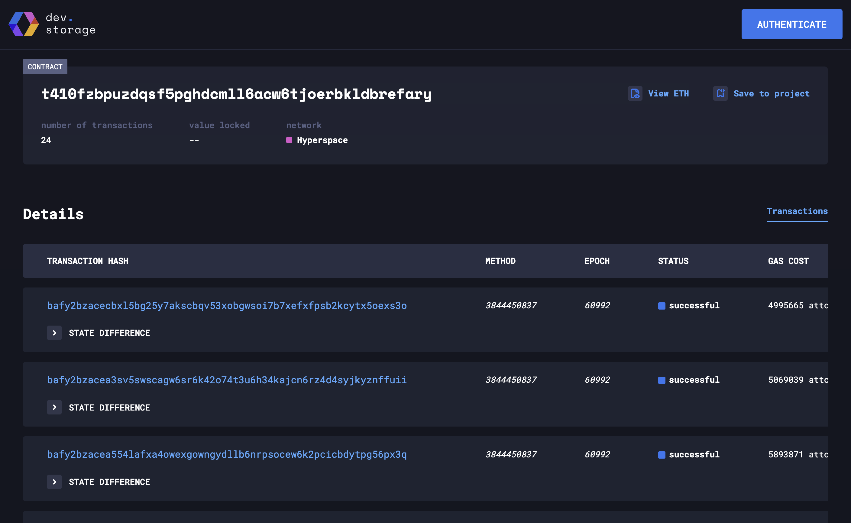 Dev.Storage, Filmine’s FVM explorer, relies on WASM execution. It has the ability to support both transpiled EVM contracts and WASM contracts that are live on the network.